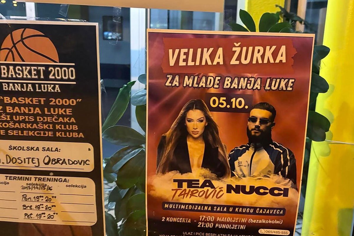 Naime, mladi su pozvani da dođu na koncert Tee Tairović i Nuccija, koji je zakaza za 5. oktobar i to u dva termina.