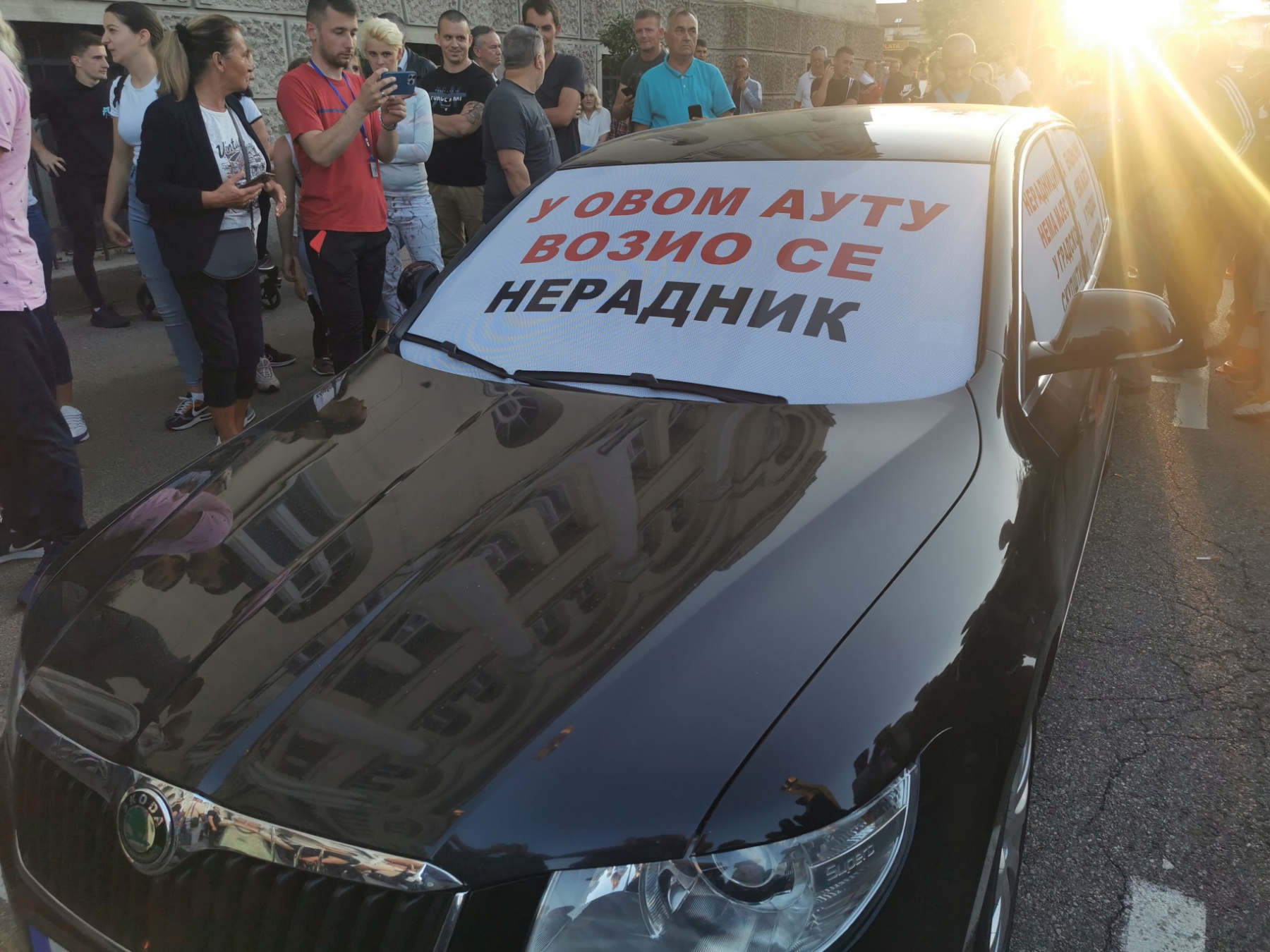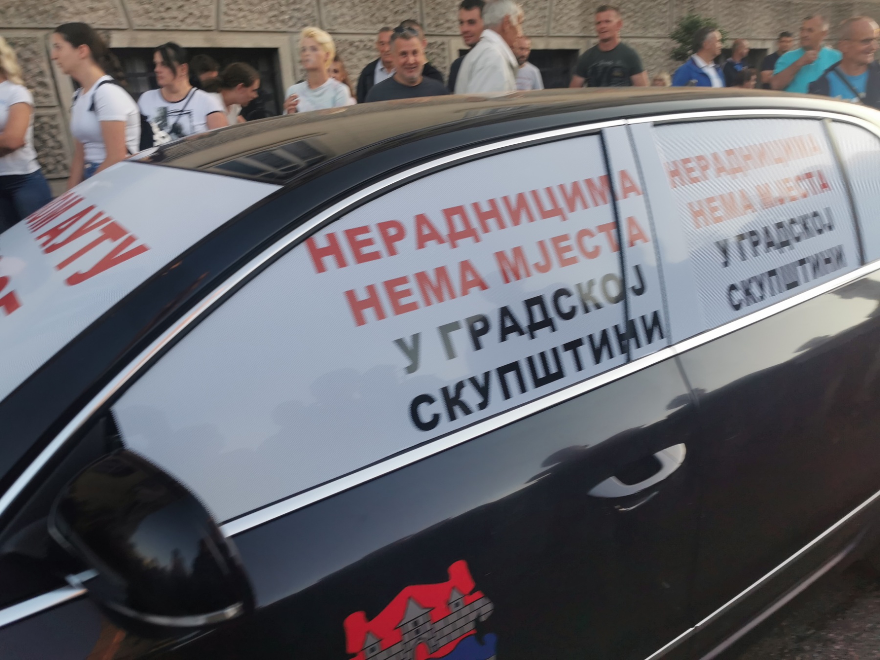 Stanivuković je pred Gradsku upravu "dotjerao" Ninkovićev automobil na kojem piše "u ovom autu vozi se neradnik".