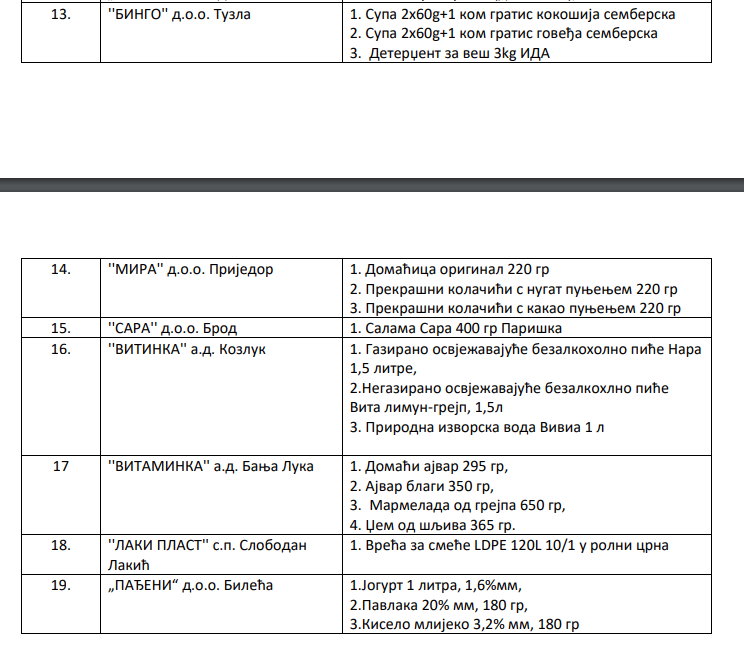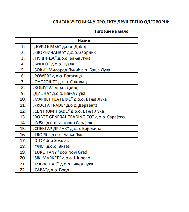 Ministarstvo trgovine i turizma Republike Srpske objelodanilo je listu 50 proizvoda oslobođenih od trgovačkih i distributivnih marži u sklopu kampanje “Društvano odgovorni”.