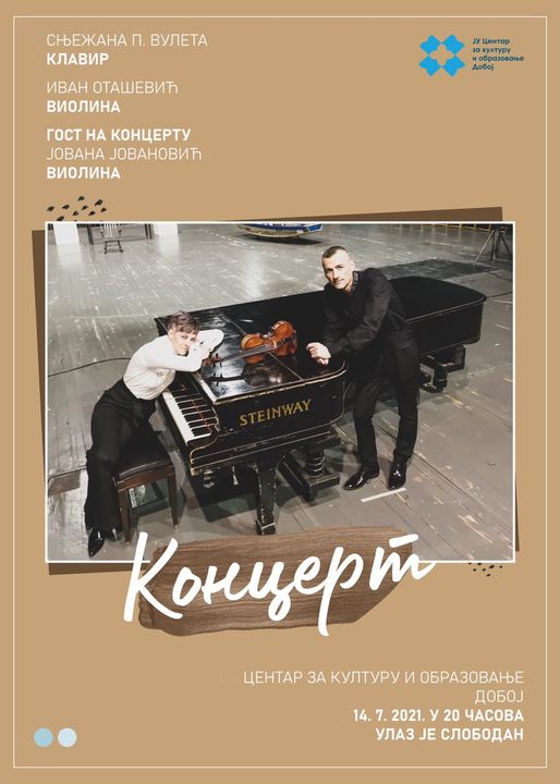 Na terasi dobojskog Centra za kulturu i obrazovanje sutra, 14. jula, sa početkom u 20 časova, biće održan koncert klasične muzike. U slučaju vremenskih neprilika isti će biti realizovan u Umjetničkoj galeriji Centra.