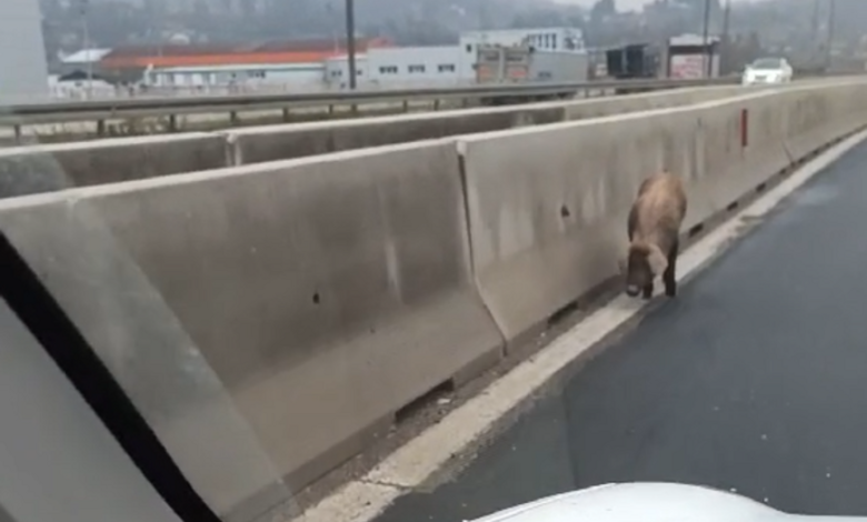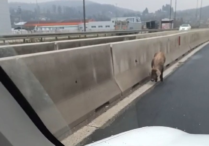 Na brzoj cesti Banjaluka-Laktaši danas je zabilježen jedan, neuobičajen prizor, gdje je jedan od vozača koji je prolazio ovom dionicom puta snimio svinju u šetnji.