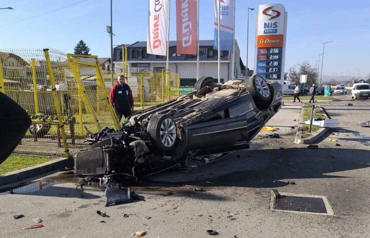 Kako se vidi na fotografijama koje kruže društvenim mrežama jedno vozilo je završilo na krovu.