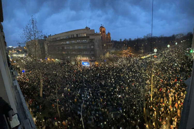 Više hiljada studenata i građana je u potpunoj petnaestominutnoj tišini odalo poštu za 15 poginulih u padu nadstrešnice rekonstruisane Željezničke stanice u Novom Sadu.