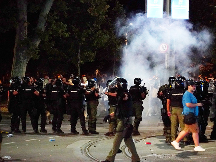 – Oni su na sebi imali maske, imali su palice, dimne bombe, štangle, sve ono čime može da se povredi policajac. Oni su krenuli i, kao što sam rekao, u 21.42 časa se na raskrsnici ulica Krunske i Ulice kneza Miloša desio prvi kontakt između ovih organizatora i nasilnika i naše policije – naveo je Luković.