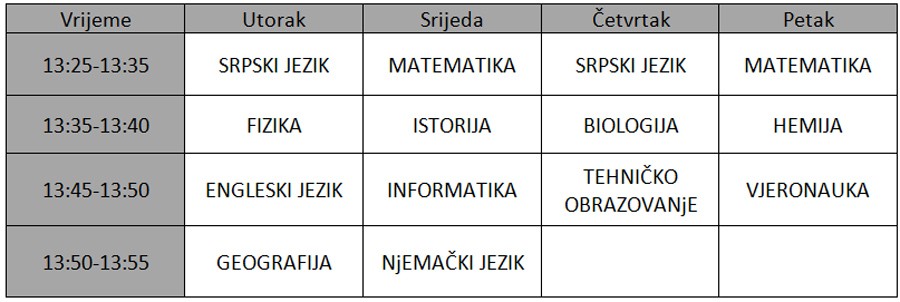 Predmetna nastava će sutra i prekosutra počinjati već od 11.25 , umjesto od 12.30 kao u prva dva dana emitovanja.