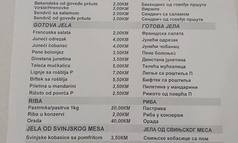 Ovo su cijene po kojima su ista jela dostupna za stanovnike Banjaluke.