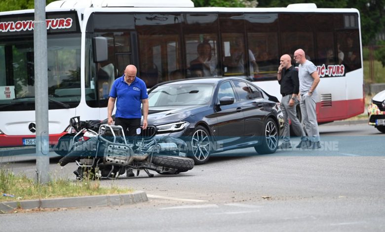 U kružnom toku kod Lesnine u Banjaluci došlo je do sudara motocikla i automobila.