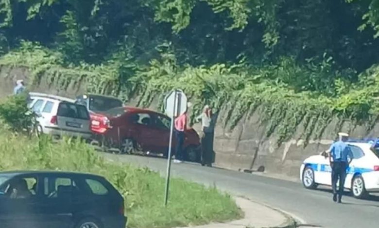 Na fotografijama je se vidi da je jedan automobil udario u potporni zid.