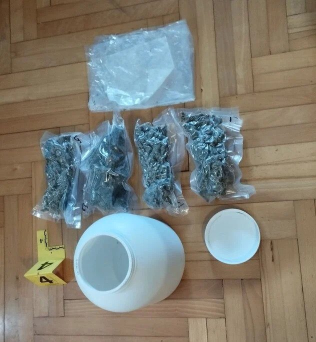 11 PVC paketa sa sadržajem suhe zeljaste materije koja svojim izgledom asocira na opojnu drogu marihuanu, ukupne težine oko dva kilograma,