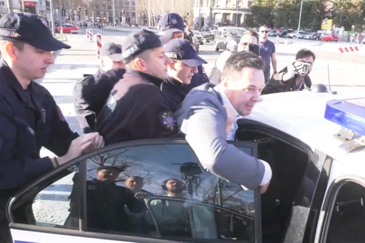Policija je uhapsila Nemanju Šarovića, voditelja KTV, koji je danas za tu televiziju izvještavao iz kampa studenata koji se nalaze u Pionirskom parku.