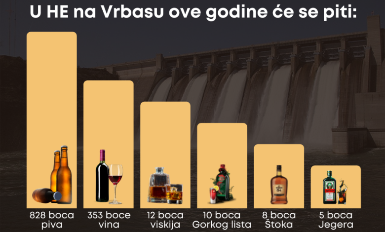 Uprava „Hidroelektrana na Vrbasu“ neće štedjeti na piću ove godine, pa su se tako na spisku „teškom“ 14.000 maraka našle stotine flaša vina i piva različitih proizvođača, a neizostavan je i viski, kojeg, ipak, nabavljaju u nešto manjim količinama.
