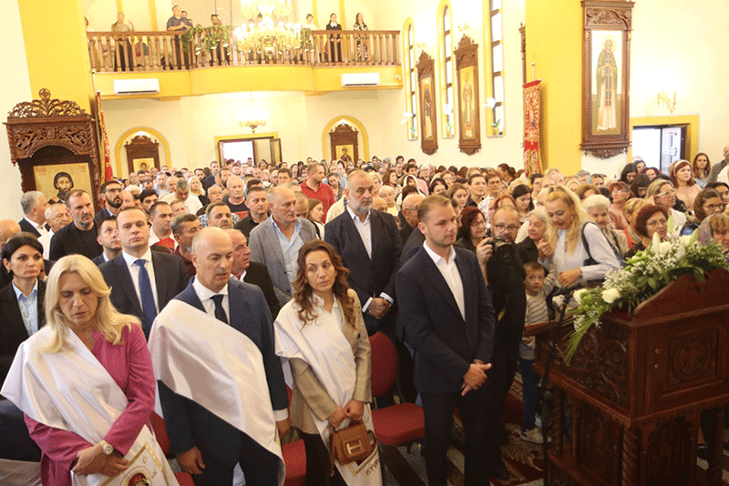 Željka Cvijanović istakla je da je velika čast za njenu porodicu da kumuju Hramu i izrazila zadovoljstvo što se ovdje, na ovom mjestu, nakon više od 80 godina, ponovo našla crkva.