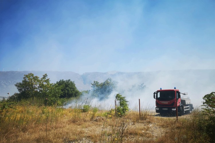 Mostarski vatrogasci se bore s ogromnim požarom koji je izbio na Bišću Polju u Mostaru i industrijskoj zoni.
