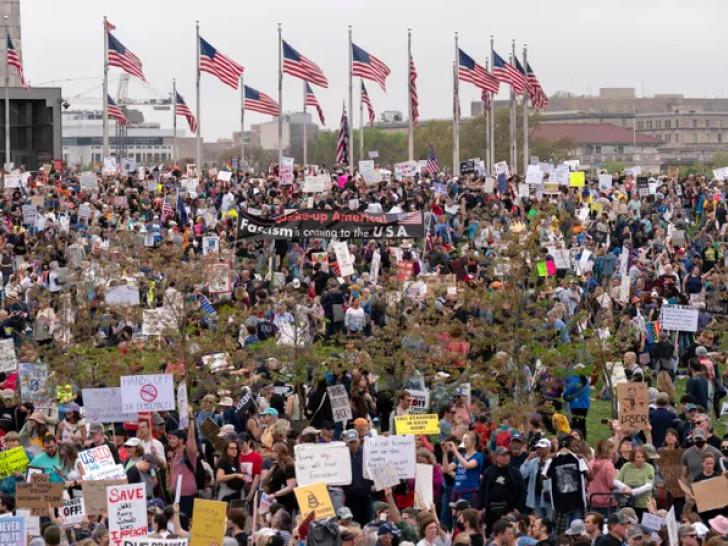 Si-Bi-Es njuz (CBS News) navodi da su protivnici Trampove administracije izašli na ulice velikih i malih gradova širom SAD u subotu, u znak osude poteza koje smatraju prijetnjama po američke demokratske ideale – od okupljanja usred Menhetna do demonstracija na komemorativnom događaju u Masačusetsu kojim je obeležen početak Američkog revolucionarnog rata pre 250 godina.