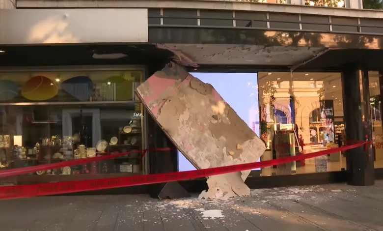 U Knez Mihajlovoj 10, ispred jedne poznate parfimerije obrušio se plafon nadstrešnice.