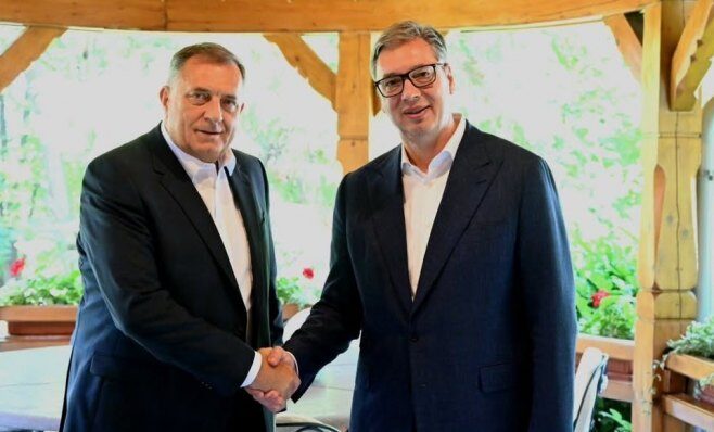 – Srećan što sam ugostio predsjednika Republike Srpske Milorada Dodika. Razgovarali smo o svim važnim pitanjima za srpski narod u cjelini. Potvrdili smo učešće i zajedničku organizaciju skupa na kojem ćemo obilježiti 30 godina od stradanja i progona srpskog naroda u zločinačkoj akciji “Oluja” – naveo je Vučić.