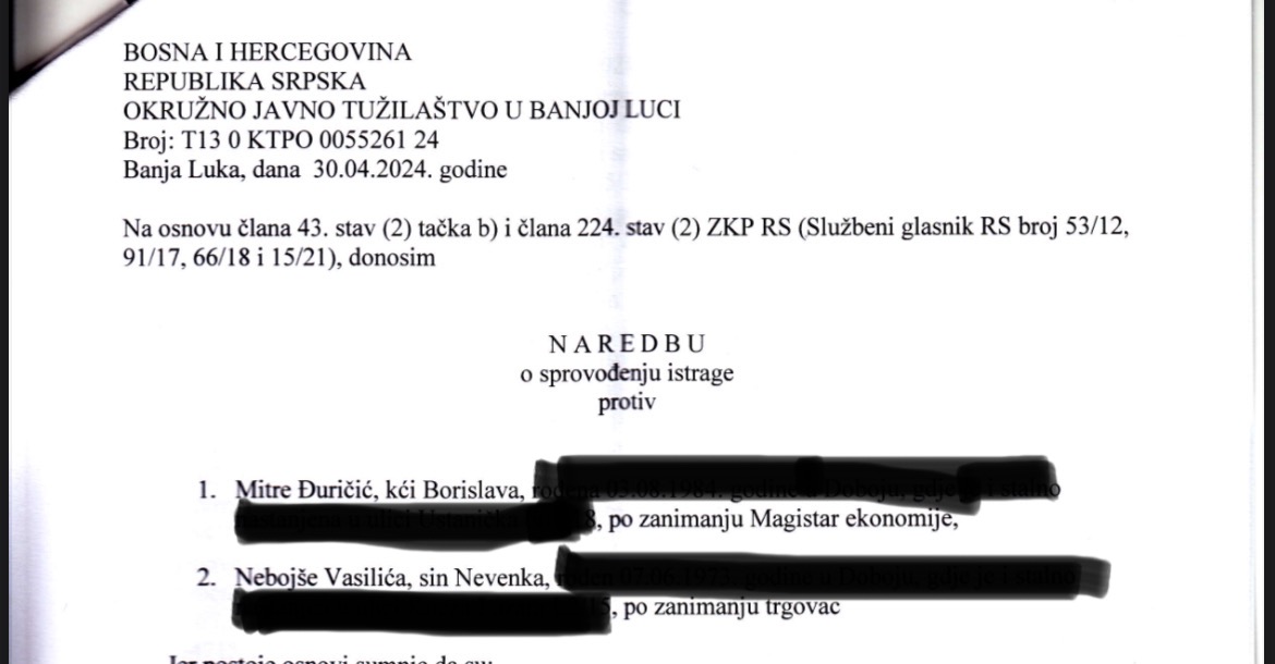 „Nebojša Vasilić i Mitra Đuričić sumnjiče se da su na prevaran način ishodovali presudu Osnovnog suda u Doboju od 27. januara 2022. godine kojom je „Win Build“ obavezan da Nebojši Vasiliću isplati 532.248 KM po osnovu navodne pozajmice koju je on dao svojoj firmi. Na osnovu te presude Osnovnog suda u Doboju, Vasilić i Đuričićeva su 17. oktobra 2022. godine podnijeli prijedlog za izvršenje Osnovnom sudu Banjaluka radi naplate potraživanja Nebojše Vasilića zabilježbom, procjenom i prodajom stanova u vlasništvu „Win Builda“, iako se radi o stanovima nad kojima je Okružni privredni sud odredio mjeru obezbjeđenja u korist „Mobi montinga“, navodi se u naredbi banjalučkog tužilaštva.