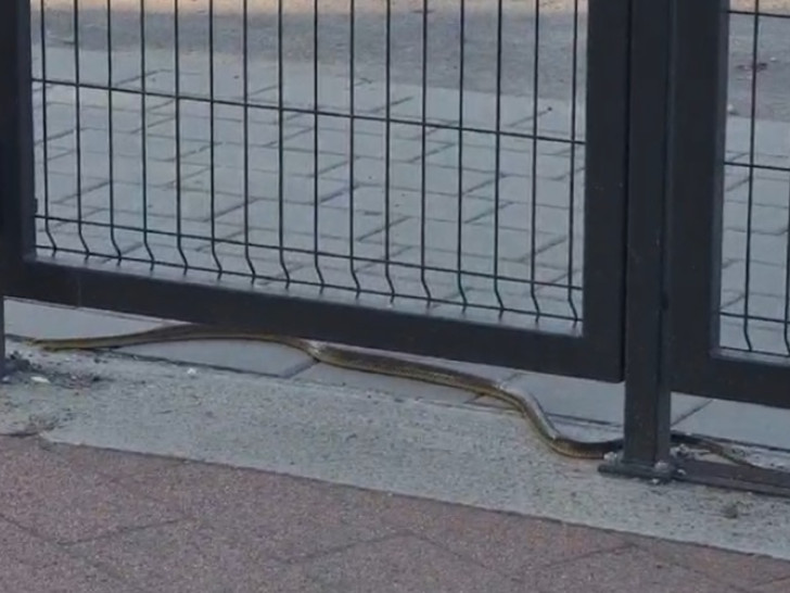 Zabrinjavajuća scena mogla se vidjeti danas popodne ispred područne škole "Vuk Stefanović Karadžić" u banjalučkom naselju Ada, gdje je kod ograde snimljena velika zmija.